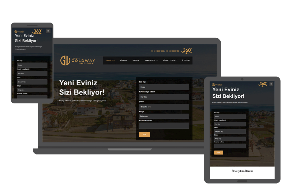 Kuzey Kıbrıs'ta emlak ve yatırım alanında hizmet veren firmamız için satılık ve kiralık ilanların listelendiği, dijital görünürlüğün dron çekimleri ve 360 derece turlar ile desteklendiği yenilikçi web sayfamız.